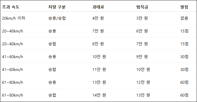 ✅ 고속도로 및 일반도로 과속 처벌 기준 (80km/h 초과 전까지)