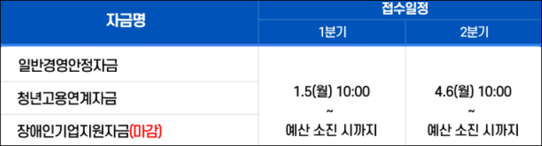 -일부 자금은 사업 업력, 매출, 사업 운영 계획 등 추가 조건을 요구할 수 있음